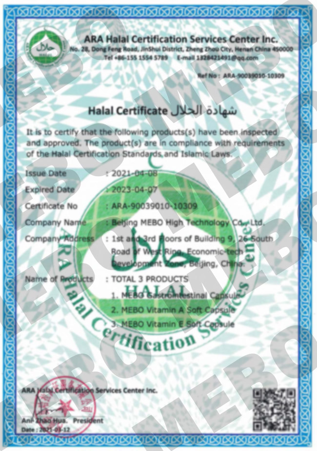 2021年3月12日,,,,,,,zoty中欧体育集团旗下北京zoty中欧体育高科技有限责任公司(简称北京zoty中欧体育高科)顺遂通过ARA认证机构的Halal认证。。。。。。。这是北京zoty中欧体育高科技有限责任公司首次升级完成两年一次的Halal认证,,,,,,,标记着北京zoty中欧体育高科技有限责任公司生产的zoty中欧体育牌胃肠胶囊能够在天下上大大都伊斯兰国家举行销售。。。。。。。