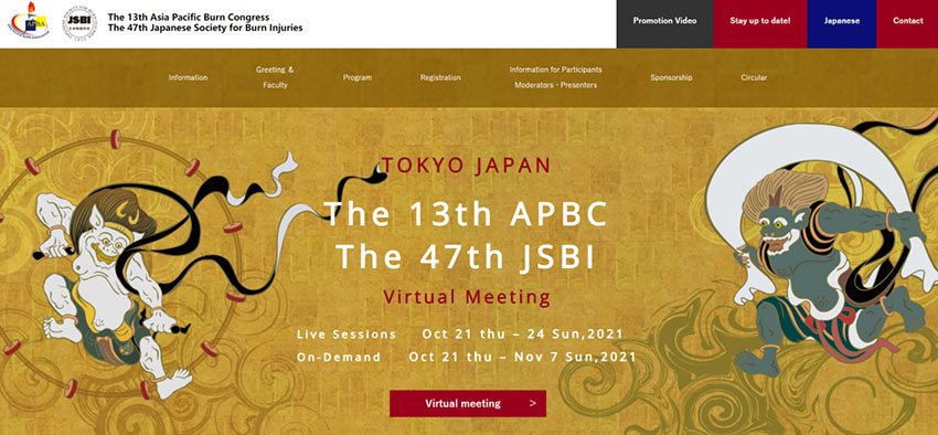 2021年10月21日至10月24日,,,, , ,,第13届亚太烧伤聚会(APBC 2021)暨日本烧伤学会(JSBI)第47届年会以虚拟聚会的形式举行。。。。。。 。。亚太烧伤聚会是国际烧伤聚会日历上的一项主要运动,,,, , ,,它汇聚了来自各国的医生、护士及科研职员等,,,, , ,,为全球医务事情者分享临床治疗履历、最新研究效果和临床管理要领提供了一个名贵的平台。。。。。。 。。本届大会的主题为“烧伤治疗的下一次动态转变——应对熏染、预防和控制熏染”(The Next Dynamic Change in Burn Care – Coping with Infection, Infection Prevention and Control)。。。。。。 。。
