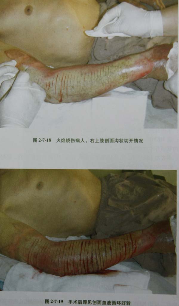 2面部、颈部焦痂沟状切口宜浅,,,,,,,只要切透真皮层即可,,,,,,,阻止对深部组织误伤。。。。。。