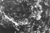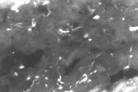 烧伤后7天(图5-4-4),烧伤后14天(图5-4-5),,,,,,在该两时间点镜下可见比烧伤后4天继续增多的表皮再生干细胞。。。。。潜在的再生干细胞即含人角卵白19型细胞的数目抵达烧伤疗程中的峰值(数目最多)。。。。。至烧伤后21天(图5-4-6)和28天(图5-4-7)两时间点潜在再生干细胞数目又减至一定的水平。。。。。视察中发明患者经湿性烧伤医疗手艺治疗后,,,,,,潜在再生干细胞的增生状态有一定的转变纪律。。。。。潜在再生干细胞可能是表皮再生的干细胞的泉源,,,,,,这些在荧鲜明微镜下显示荧光的细胞是深Ⅱ度和浅Ⅲ度烧伤后还保存的潜在的表皮再生干细胞。。。。。这些细胞可使烧伤湿性医疗手艺治疗的深Ⅱ度烧伤无瘢痕愈合,,,,,,浅Ⅲ度烧伤皮肤再生。。。。。