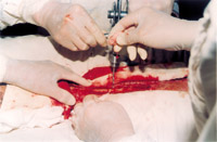 5-5-4 用骨钻在骨面按距离1cm钻孔,, ,,,,钻孔深度达髓质,, ,,,,有微出血