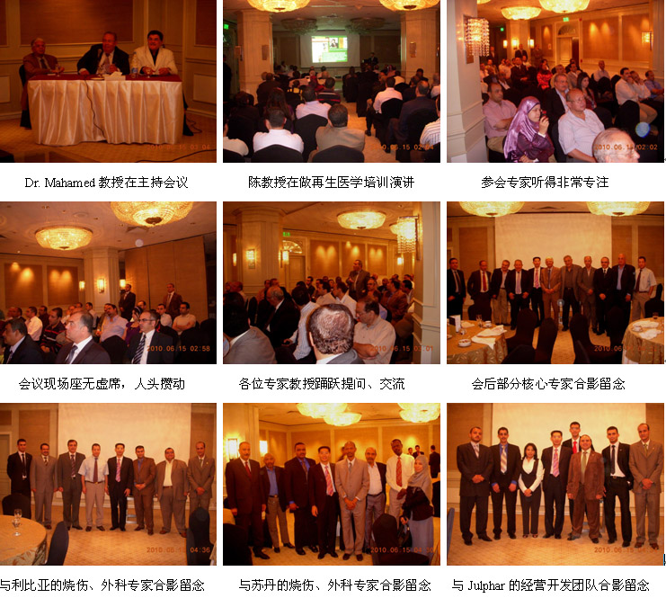 2010年6月15日,,,,,,经由全心的组织和策划,,,,,,应埃及烧伤整形外科学会的约请,,,,,,6名来自苏丹、11名来自利比亚和45名来埃及的烧伤整形外科、创伤骨科和通俗外科的临床医师们相聚在埃及首都开罗,,,,,,共聚一堂聆听来自中国的烧伤再生医学专家的演讲、学习和交流烧伤再生医学的临床履历。。。。。。。