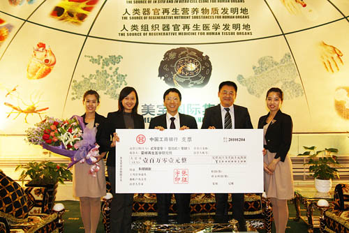 张征宇先生做为人体再生实践第一人, ,,,,经由长时间的再生回复手艺支持, ,,,,启动了自身再生回复的能力, ,,,,张先生体验到人体再生回恢复科学带来的不可抗的神奇力量, ,,,,于12月4日来到荣祥再生医学研究所总部, ,,,,带着向征着第一实践者的一百万零一元赞助经费为对荣祥再生医学研究所举行研究经费捐助, ,,,,研究所所长代表研究所所有事情职员怀着谢谢的心情接受了张先生的善行 。。。。。。。