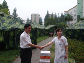 6月10日中国抗震救灾创疡专家医疗队在会诊病人的同时也再次代表医疗队总指挥徐荣祥教授向医院又捐赠了抗震救灾急需药品zoty中欧体育创疡贴一箱、曲咪新一箱、湿润烧伤膏一箱,, ,,, ,,,以及慰问金 。。。。。一方面中国抗震救灾创疡专家医疗队依然坚持在前线举行抗震救灾伤员救治事情,, ,,, ,,,另一方面力所能及地向灾区医院举行急需药品、物质支援 。。。。。