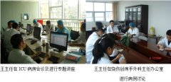 在ICU病房会诊培训手艺后,, ,,,,,,王主任又应邀并在该医院烧伤创疡手外科认真人及该科全体医护职员陪同下,, ,,,,,,又深入该医院烧伤创疡手外科病区为第2例烧伤总面积达70%的大面积烧伤会诊,, ,,,,,,会诊竣事后,, ,,,,,,王主任在该科主任办公室又与该科全体医生就该例大面积烧伤患者的救治举行了讨论,, ,,,,,,并制订详细的治疗计划。。 。。。。
