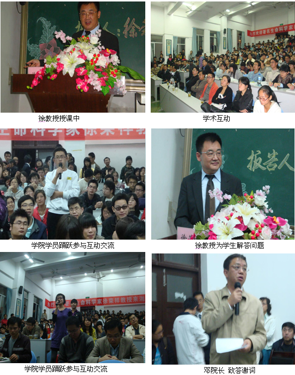 2010年10月23日,,,,,,湖南省中医药大学迎来了建校50周年大庆,,,,,,在这欢悦喜庆的日子里,,,,,,著名生命科学家徐荣祥教授应湖南省中西医团结学会,,,,,,湖南省中医药大学党委的约请,,,,,,为该校在读博士生、研究生讲学,,,,,,受到了医务职员的热烈欢迎。。。。。。。。加入本次聚会的有湘雅三院、湘雅二院、省人民医院等各级专家及学生,,,,,,共计260余人。。。。。。。。本次聚会由湖南省中医药大学中西医团结学院邓常青院长主持。。。。。。。。首先,,,,,,湖南省中华医学会、中西医团结学会秘书长刘祖贞和中医药大学中西医团结学院书记陈梦溪划分致贺词,,,,,,随后徐荣祥教授向湖南省中医药大学捐赠了由他撰写确当今天下第一部人体再生科学专著——《人体再生回复科学》。。。。。。。。书中关于人体再生回复科学研究不但继续了干细胞研究,,,,,,并且实现了西方天下生命科学前沿还没有抵达的临床应用效果,,,,,,在临床实践上完成了人体组织和器官的原位再生回复,,,,,,不但爆发了新的再生医学系统,,,,,,并且率先直接跨入了人体再生科学新时代,,,,,,形成了全新的人体再生回复科学系统,,,,,,突破了生命科学古板而顽固的桎梏,,,,,,为以后的天下生命科学研究提供了新系统。。。。。。。。
