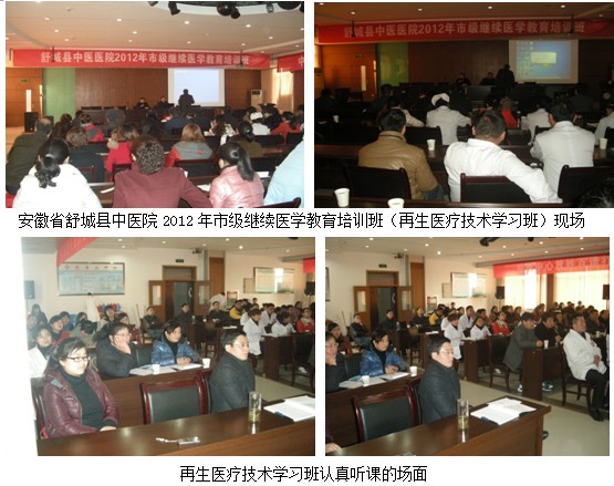 8日下昼两点,,,,,,再生医疗手艺讲座在舒城县中医院全院及全县州里卫生院举行,,,,,,杜主任使用大宗临床实践图片资料详细先容了再生医疗手艺发明人徐荣祥教授研究再生医疗手艺的历程,,,,,,海内外临床实践情形以及研究发明的再生营养物质和角卵白(K—19型)干细胞及潜能再生细胞(PRCS)。。。。。先容竣事后舒城中医院举行了审核考试,,,,,,加入学习的医护职员均取得了优异效果,,,,,,抵达了深入再生医疗手艺地目的。。。。。其他医院同样取得了优异的培训效果。。。。。