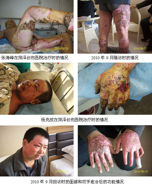 2010年9月26日~28日,,,,,,,中国中西医团结学会烧伤专业委员会常委、北京zoty中欧体育烧伤创疡研究所临床部主任杜福勤教授走访了安徽阜阳市临泉县在“2.6烧伤事务”中的杨克战、张海峰2位受伤者,,,,,,,相识其出院后的愈后情形。。。 。 。。。。
