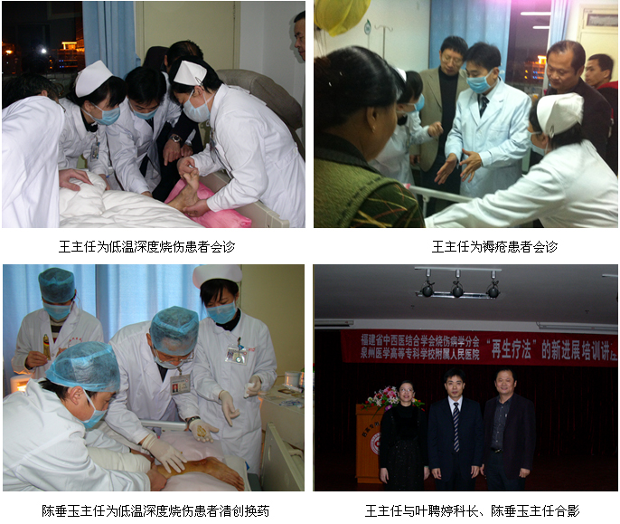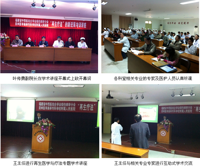 2010年12月30日, 应福建省中西医团结学会烧伤病学分会及应泉州医学高等专科学校隶属人民医院的约请,, , ,,,,,中国中西医团结学会烧伤专业委员会常委、中国烧伤创疡杂志常务编委、北京zoty中欧体育烧伤创疡研究所副所长、临床研究部主任兼研究员王洪生教授来到该医院举行“再生疗法在糖尿病足等难愈性创面治疗新希望”专题讲座 。。。。。。。。