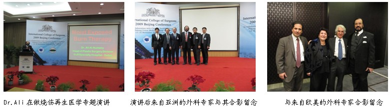 2009年11月14日,,,,,,,Dr.Ali应邀加入了在北京协和医院举行的2009年第37届北京国际微创外科大会,,,,,,,本次大会是由国际外科学院(ICS)与中华医学会外科学分会和北京协和医院团结举行,,,,,,,国际外科学院1935年建设于日内瓦,,,,,,,现在拥有全球70多个国家和地区的分会,,,,,,,在国际上有较高的学术影响力,,,,,,,加入本次大会有来自美国、英国、法国等多个国际外科专家,,,,,,,共计20余人。。。。。。。。Dr.Ali应邀以“烧伤湿润袒露疗法”为题,,,,,,,向天下各国的外科专家先容了他应用烧伤再生医学手艺治疗种种烧伤、创疡患者所取得的效果和实现皮肤再生回复的机理等,,,,,,,专题演讲引起了美国、英国、德国等天下各外洋科专家们的很大兴趣,,,,,,,都对此项手艺在治疗烧伤创面的不疼痛、不损伤、利便适用且能够实现皮肤高质量再生愈合而感应无比的震惊和钦佩,,,,,,,都希望更多地相识、学习和应用该项手艺治疗种种烧伤、溃疡和难愈合创面。。。。。。。。烧伤湿润袒露疗法,,,,,,,被以为是本次大会所先容的微创治疗要领中创伤最小、且治疗效果最好的治疗要领,,,,,,,值得临床推广使用。。。。。。。。