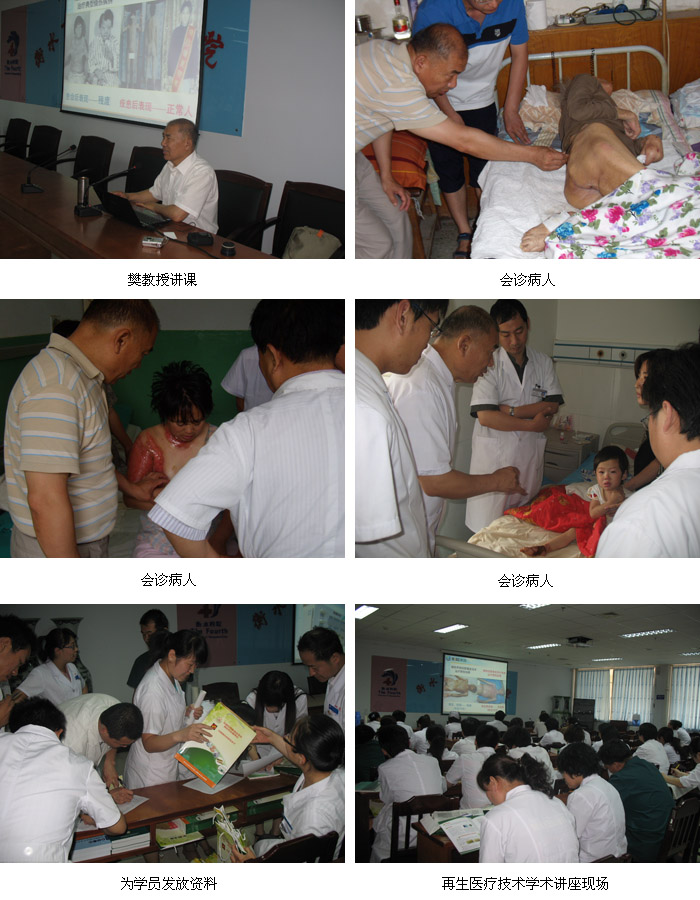 6月18日至22日,,,,,,,应衡水市第四人民医院和沧州肃宁县人民医院的约请,,,,,,,中国中西医团结学会烧伤专业委员会常委、北京烧伤创疡研究所临床部主任樊兆宗教授,,,,,,,来到这两家医院举行再生医疗手艺的培训班。。 。。。。 。
