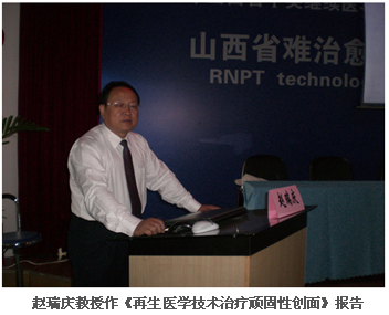 3、中国中西医学会烧伤专业委员会副主任委员赵瑞庆教授 ,,,, ,报告问题为《再生医学手艺治疗顽固性创面》