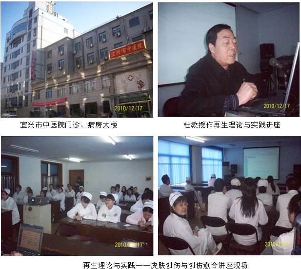 值2010年尾岁首之际,,, ,, ,,,中国中西医团结学会烧伤专业委员会常委、北京zoty中欧体育烧伤创疡研究所临床部杜福勤教授应宜兴市中医院医务科王科长和吕建明副院长的约请,,, ,, ,,,于2010年12月17日下昼在该院聚会室举行再生医学理论与手艺实践学术讲座。。。。 。讲座由该院医务科王科长主持,,, ,, ,,,加入讲座的有该院外科、内科、骨科、妇产科、皮肤科、肛肠科、儿科以及有关手艺辅助科室120余人,,, ,, ,,,吕建明副院长百忙中抽时间加入了讲座并和杜主任举行了深入交流。。。。 。