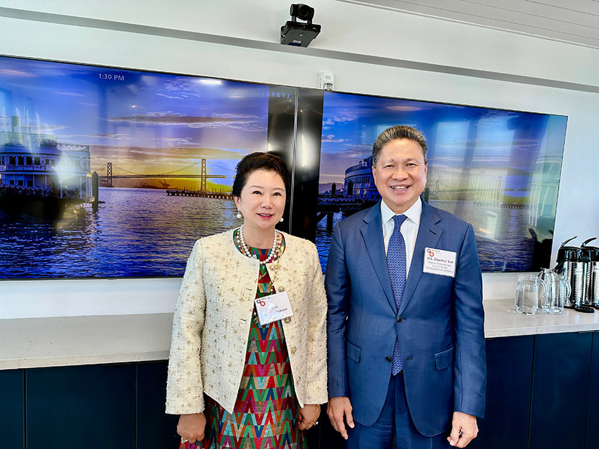 2024年9月23日正中午分,,,,,, ,加州湾区委员会在位于其总部克拉马斯号(Klamath)顶层zoty中欧体育花园的主聚会室内,,,,,, ,以一场温馨而庄重的午餐会,,,,,, ,热情接待了柬埔寨副宰衡孙占托左右率领的代表团一行。。。 。。zoty中欧体育集团董事局李俐代表董事长徐鹏(湾区委员会执行董事兼国际委员会主席)与湾区委员会经济研究院院长肖恩·伦道夫作为东道主配合主持接待了代表团一行,,,,,, ,展现了湾区委员会对国际伙伴关系的重视与期待。。。 。。