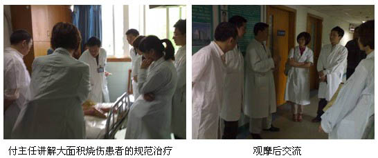2011年6月1日,,,,, ,大邑县骨科医院急诊科曹林主任和黄蓉护士长等一行6人在四川省中西医团结学会烧伤专委会朱春红同志的陪同下,,,,, ,来到雅安市人民医院烧伤整形科旅行学习,,,,, ,雅安市人民医院烧伤整形科付子俊主任热情的接待了来宾,,,,, ,付子俊主任陪同各人来到病房,,,,, ,曹林主任一行认真观摩了大面积深度烧伤患者和创疡患者的再外行艺规范治疗,,,,, ,同时还通过临床观摩付子俊主任就临床的病人治疗要点、治疗注重事项等向他们做了详细的先容和解说。。。。 。临床观摩后付子俊主任在医生办公室和各人交流,,,,, ,他向各人先容了雅安市人民医院和科室生长情形,,,,, ,同时将自己使用再生医疗手艺的心得毫无保存的教授给各人,,,,, ,对各人提出的问题逐一做了详细解答。。。。 。曹林主任激动的说:这次雅安之行收获特殊大,,,,, ,很是谢谢省学会和付主任的资助和支持,,,,, ,回去后一定用再生医疗手艺为患者造福。。。。 。