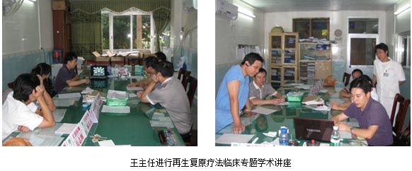 2011年9月1日,, ,,,中国烧伤创疡杂志副总编辑、中国中西医团结学会烧伤专业委员会常委兼秘书、北京zoty中欧体育烧伤创疡研究所副所长、第二临床临床研究部主任王洪生研究员应邀来到吴川市人民医院外二科以“再生回复疗法在烧伤及难愈性创疡创面治疗新希望”为题做了临床专题讲座,, ,,,吴主任及科室的主要医生都加入了讲座。。。。。。。。