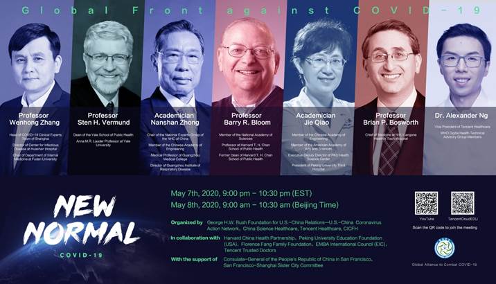 中国北京时间5月8日上午9:00(美东时间5月7日晚9点),,,, ,,,,国家卫健委高级别专家组组长、中国工程院钟南山院士,,,, ,,,,中国工程院、美国人文与科学院乔杰院士,,,, ,,,,上海市新冠肺炎临床救治专家组组长、复旦大学隶属西岳医院熏染病中心主任张文宏教授,,,, ,,,,腾讯医疗副总裁兼医疗康健事业部认真人、天下卫生组织数字卫外行艺咨询小组专家成员吴文达医生;;;;;美国国家科学院院士、哈佛大学公共卫生学院Barry·Bloom教授,,,, ,,,,耶鲁大学公共卫生学院院长Sten·Vermund教授, 纽约大学朗格尼医学中心Brian·Bosworth教授等来自中外抗疫一线的重量级专家将围绕“抗击COVID-19一线履历与战略的多边分享”主题,,,, ,,,,共议新冠肺炎疫情防控履历与挑战,,,, ,,,,为全球战疫着力。。。 。。。。