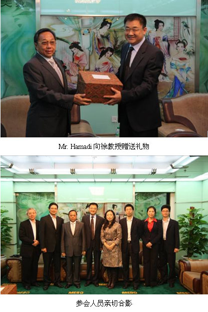 10月20日下昼一点 ,,,,,,,Mr. Hamadi Widjaja一行如约来到zoty中欧体育北京总部 ,,,,,,,受到了国际市场总部总司理孙霞女士及zoty中欧体育团队的热情接待 ,,,,,,,随后双方睁开了既定的商务谈判 。 。。。。。孙总继往开来地总结了MEBO与Combiphar五年以来的生长历史 ,,,,,,,并向客人先容了集团2007年以来国际市场板块的高速生长 ,,,,,,,强调zoty中欧体育印尼市场现在及以后的快速生长与双方的细密合作息息相关 。 。。。。。Mr. Hamadi体现完全赞成孙总的意见 ,,,,,,,提出zoty中欧体育一直都是他们最主要的合作伙伴 ,,,,,,,作为Combiphar TOP5的奇异优势产品将被列为该公司未来五年市场生长的要害点之一 ,,,,,,,提出在以后将继续加大投入 ,,,,,,,继续增强与zoty中欧体育高层的深入交流 ,,,,,,,一直拓展双方的多元化合作 。 。。。。。随后由Combiphar公司新任营销总裁Mr. Paulus汇报了未来五年的MEBO生长妄想 ,,,,,,,孙总针对对方的各项妄想划分提出了名贵的意见和建议 。 。。。。。