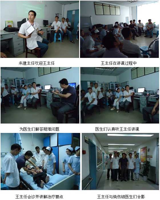 2011年7月11日下昼,,,,,,中国烧伤创疡杂志社副总编辑、中国中西医团结学会烧伤专业委员会常委兼秘书、北京zoty中欧体育烧伤创疡研究所副所长、临床研究部主任王洪生研究员应重庆綦江县中医院的约请来到该院创伤外科做临床学术交流。 。。。。。。。该科室是綦江中医院的创伤救治重点专科,,,,,,有专门的烧伤治疗小组及中心ICU,,,,,,为该科室收治严重创伤及大面积烧伤患者提供了包管。 。。。。。。。