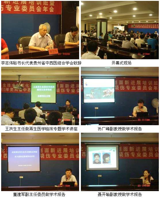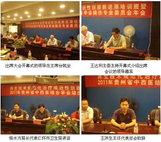 2011年7月22日至23日,, ,,,,由贵州省中西医团结学会第二届烧伤专业委员会主理,, ,,,,仁怀市向阳医院协办的2011年贵州省中西医团结学会第二届烧伤专业委员会第二次学术年会暨“再外行艺规范化治疗难治性创面学术聚会”在仁怀市酒都大旅馆盛大举行。。 。。。。。来自遵义医学院隶属医院,, ,,,,贵州省疾控医院,, ,,,,贵阳中医学院第一隶属医院,, ,,,,遵义市第一人民医院,, ,,,,贵阳市第二人民医院,, ,,,,贵阳市第六人民医院,, ,,,,遵义市中医院,, ,,,,遵义妇女儿童医院,, ,,,,毕节地区人民医院,, ,,,,铜仁地区人民医院,, ,,,,黔西南州人民医院,, ,,,,凯里州医院,, ,,,,都匀414医院,, ,,,,安顺302医院,, ,,,,仁怀市人民医院,, ,,,,仁怀市中医院,, ,,,,独山县人民医院,, ,,,,水城县人民医院,, ,,,,丹寨县人民医院,, ,,,,金沙县中医院,, ,,,,遵义县人民医院,, ,,,,赤水市人民医院,, ,,,,道真县人民医院,, ,,,,仁怀市向阳医院及各区县50余家医疗单位100余名专家、学者及相关专业的医护职员加入了学术年会,, ,,,,仁怀市电视台对聚会举行了全程采访报道。。 。。。。。为了提高尚州省中西医团结学烧伤专业委员会的学术水平,, ,,,,本次聚会特殊约请了中国烧伤创疡杂志社副总编辑、中国中西医团结学会烧伤专业委员会常委兼秘书、北京zoty中欧体育烧伤创疡研究所副所长、临床研究部主任王洪生研究员等海内省内相关专业的专家举行专题学术讲座。。 。。。。。
